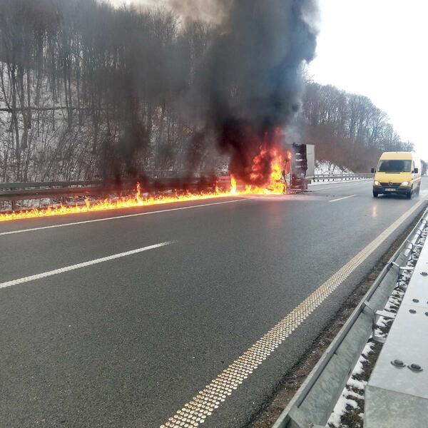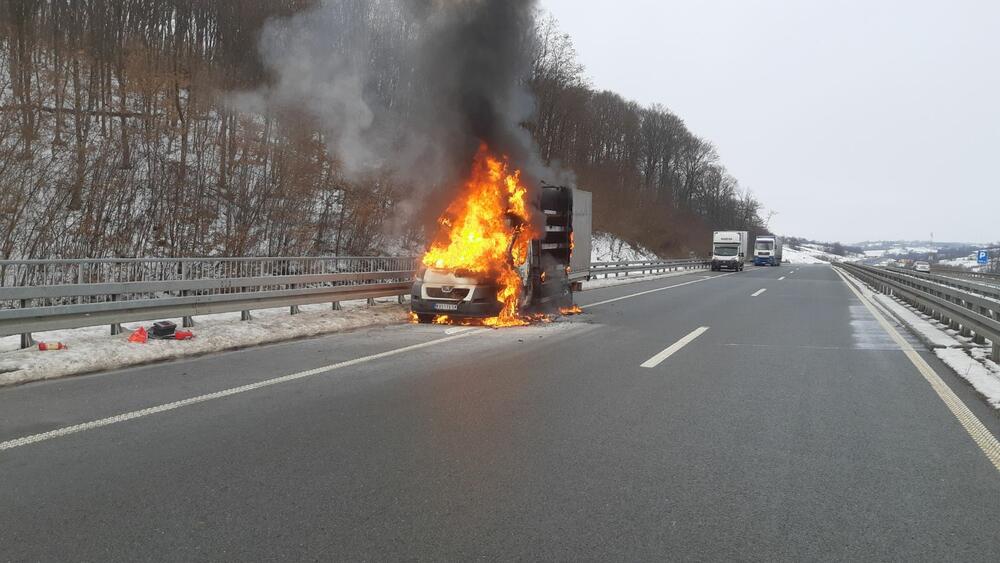 JEZIV PRIZOR NA AUTOPUTU: Gori kamion kod Takova, teretnjak se zapalio u pokretu (FOTO)