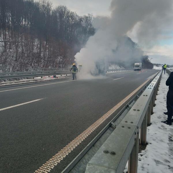 Na autoputu Miloš Veliki na tri kilometra od petlje u Takovu iz pravca Obrenovca došlo je do teške saobraćajne nezgode kada se zapalio kamion u pokretu.
