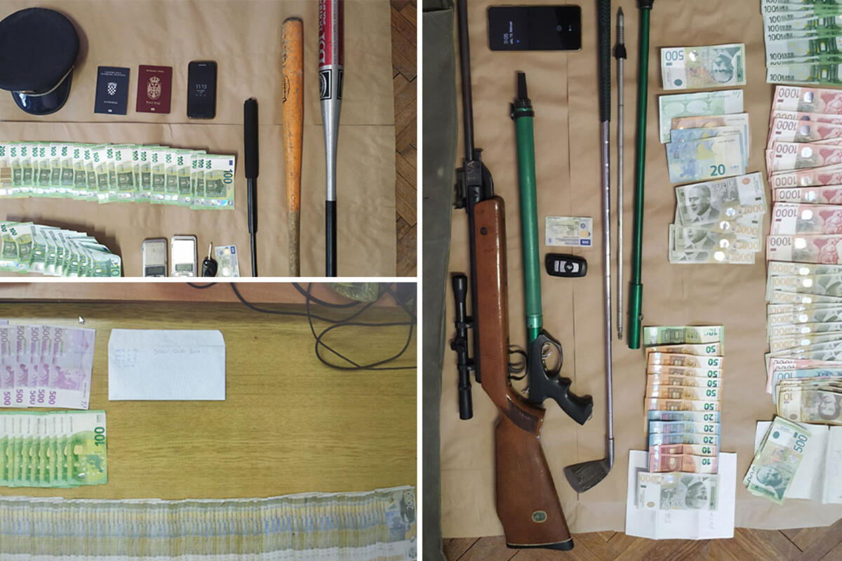 U akciji koja je jutros sprovedena na teritoriji Pančeva, prilikom pretresa više lokacija, policija je oduzela osam automobila, 11.680 evra i 250.500 dinara, tri pancira, devet mobilnih telefona, dve bejzbol palice, malokalibarsku pušku, revolver i vazdušnu pušku.