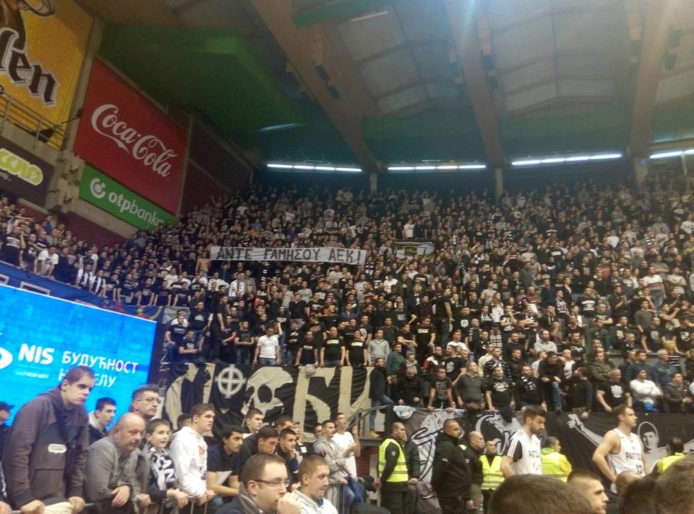 Takođe bio je tu i transparent na grčkom sa porukom za gostujuće igrače.