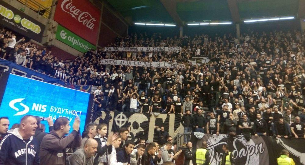 - Za čast, potomke i zemlju svoju, srpska deca stajaće u stroju - pisalo je na transparentu navijača Partizana.