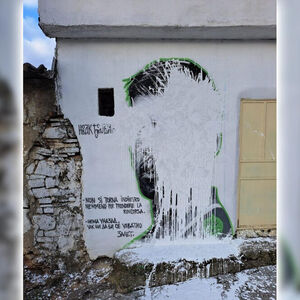 Stariji žitelji takozvanog srpskog dela Orahovca, sa učenicima osnovne škole i Gimnazije očistili su danas mural vodom.