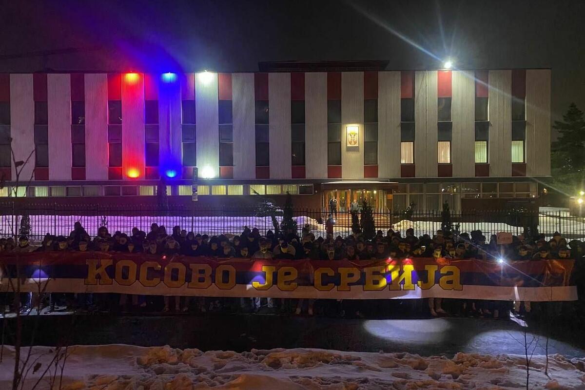 Na društvenim mrežama je osvanula fotografija sa pomenutog okupljanja. Oni su se sa velikom zastavom Srbije na kojoj stoji natpis "Kosovo se Srbija" slikali ispred amabasade.