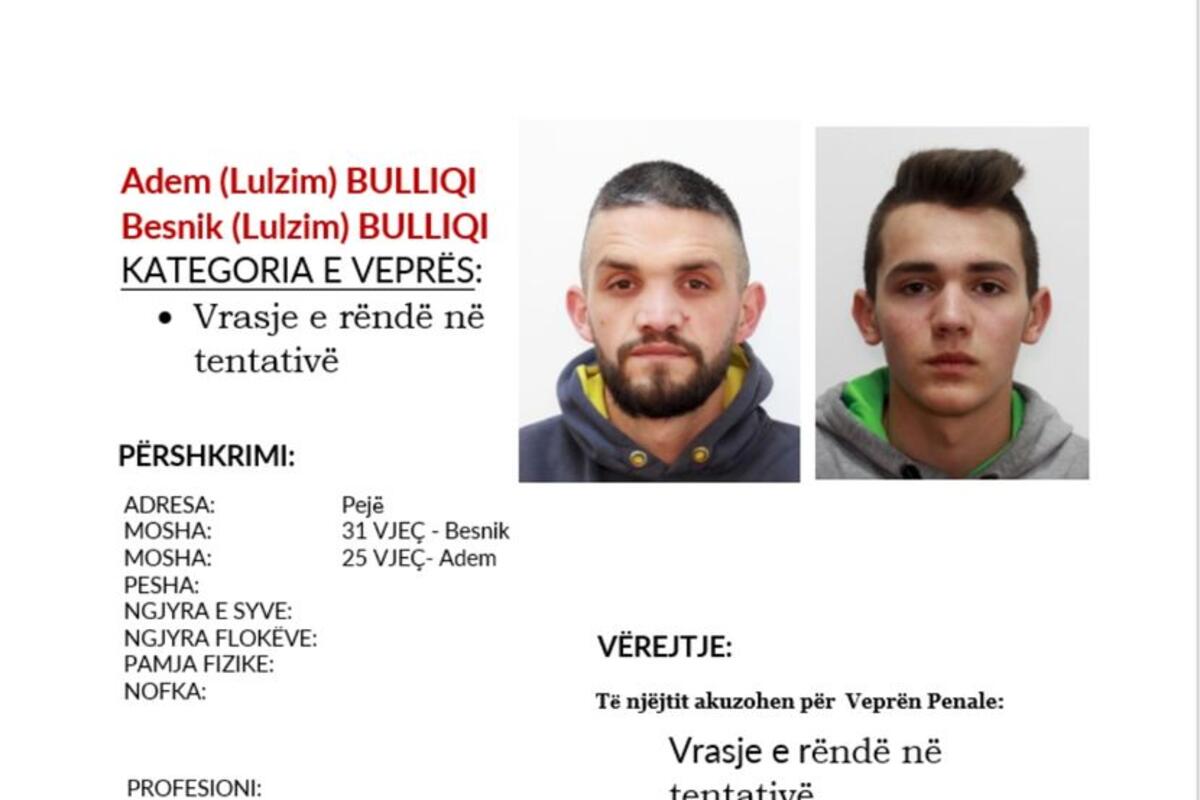 Regionalna direkcija kosovske policije u Peći je, na osnovu zakona o objavljivanju fotografije sa ostalim beleškama traženog lica, a uz ovlašćenje Osnovnog javnog tužilaštva u Peći, izdala je zahtev za saradnju sa građanima kako bi došlo do njihovog lociranja i hapšenja.