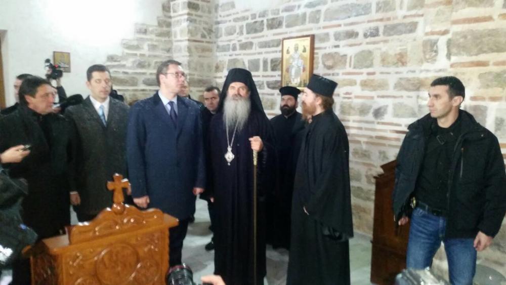 Predsednik Vučić je stigao u manastir Banjska gde ga je dočekao vladika Teodosije.