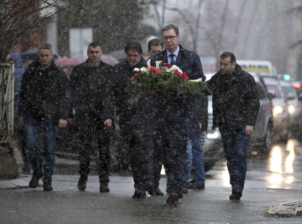 Vučić je nakon toga u pratnji direktora Kancelarije za KiM Marka Đurića, šefa BIA Bratislava Gašića, predsednika opština sa severa Kosova i predstavnika Srpske liste polaganjem venca odao počast tragično ubijenom Ivanoviću.