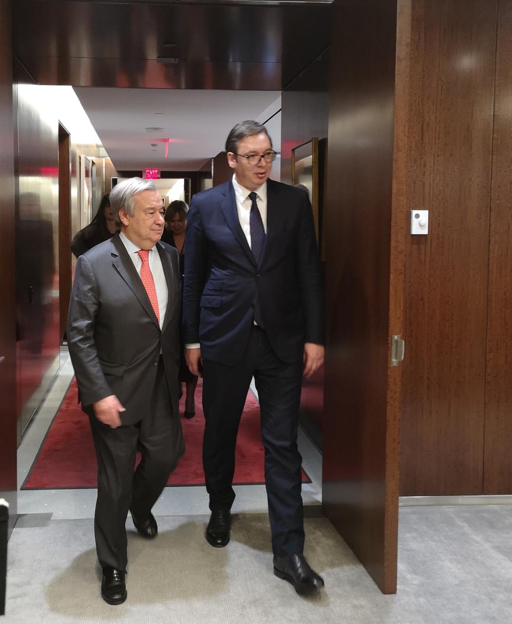 Predsednik Republike Srbije Aleksandar Vučić sastao se u Njujorku sa generalnim sekretarom Ujedinjenih nacija Antonijom Guterešom sa kojim je razgovarao o jednostranim potezima Prištine i situaciji u regionu.