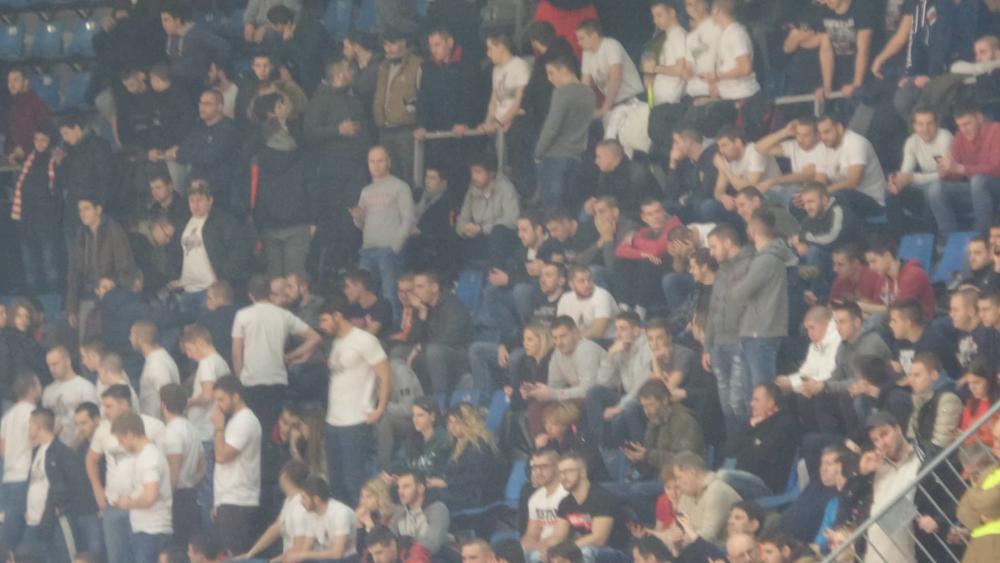 I jedna i druga navijačka grupa pojavila se u identičnim majicama sa oznakom južne srpske pokrajine, tačnije oblikom njene teritorije i sa jasnom porukom da je "ono i dalje srpsko".