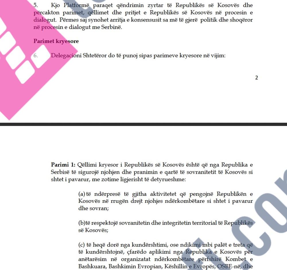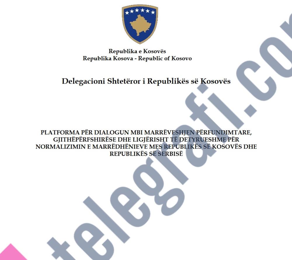 5. Ova platforma predstavlja zvaničnu poziciju Republike Kosovo i definiše principe, ciljeve i očekivanja Republike Kosovo u procesu dijaloga. Kroz nju se cilja na stvaranje šireg političkog i društvenog konsenzusa o procesu dijaloga sa Srbijom.