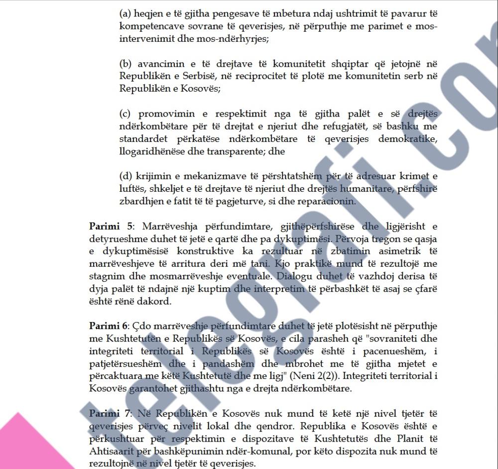 Nema sporazuma o bilo čemu dok nema sporazuma o svemu. Kao što je napisano u Principu 1, obostrano priznanje nezavisnosti je primarni rezultat.