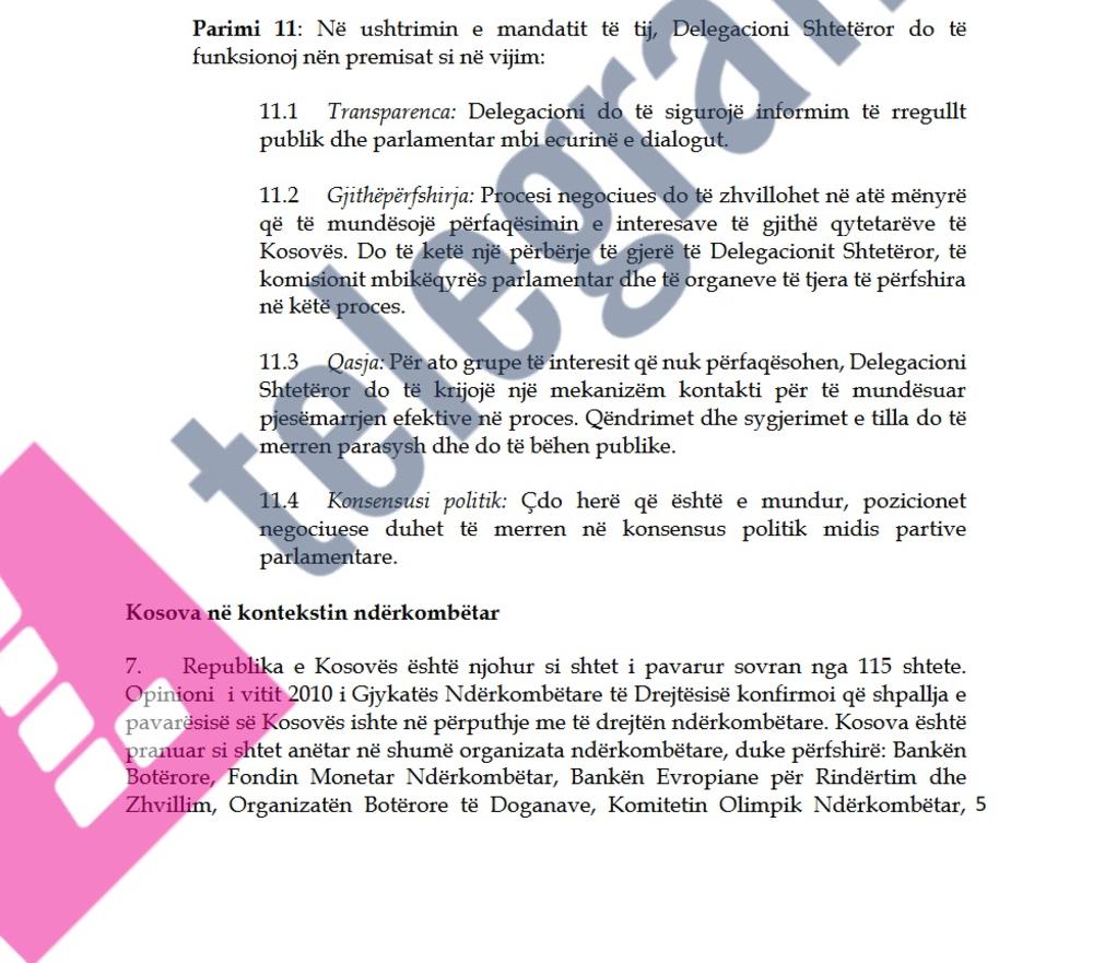 11. 2. Razumljivost: Proces pregovora će biti razvijen na takav način da će predstavljati ostvarivanje interesa svih građana Kosova. Postojaće široka zastupljenost parlamentarnog nadzora i tela uključenih u ovaj proces