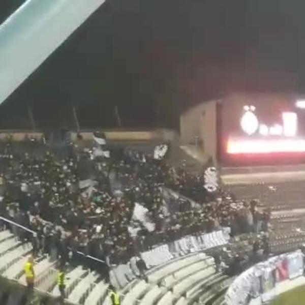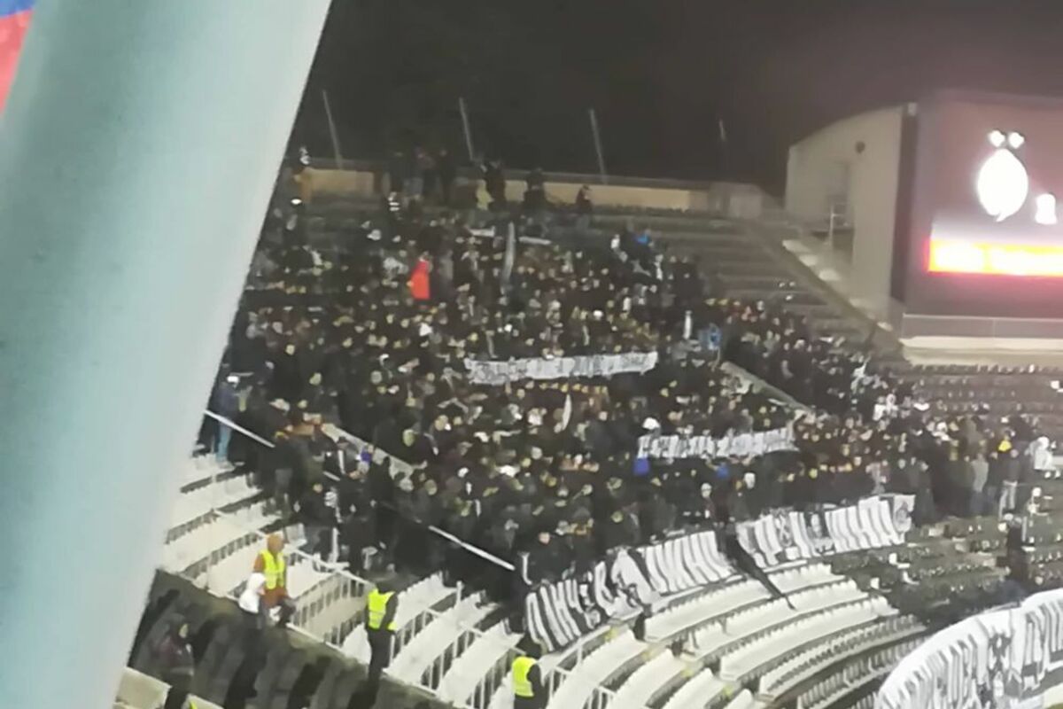Navijači crno-belih su istakli transparent na početku drugog poluvremena