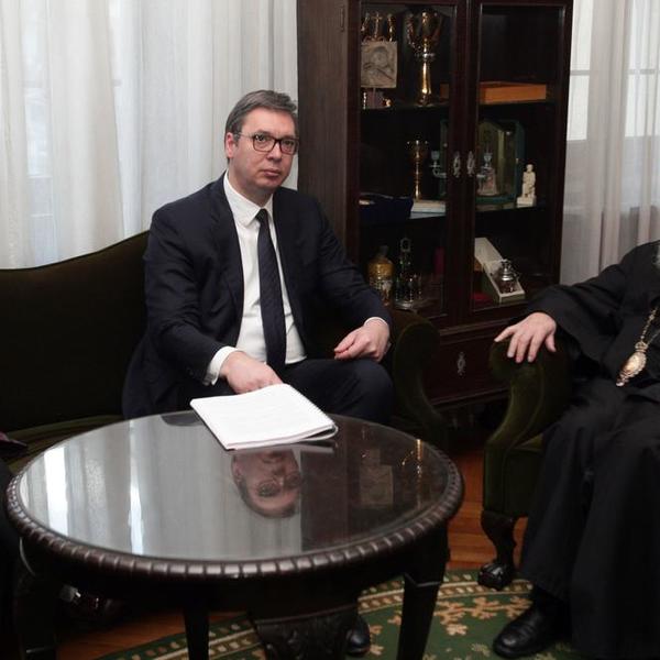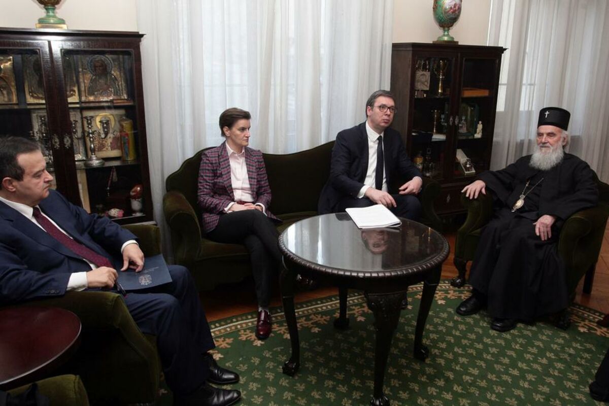 Jutros u 7.30 počeo je susret predsednika Srbije Aleksandra Vučića, predsednice vlade Ane Brnabić i potpredsednika vlade i ministra spoljnih poslova Ivice Dačića s patrijarhom srpskim Irinejom i Svetim arhijerijskim Sinodom Srpske pravoslavne crkve.