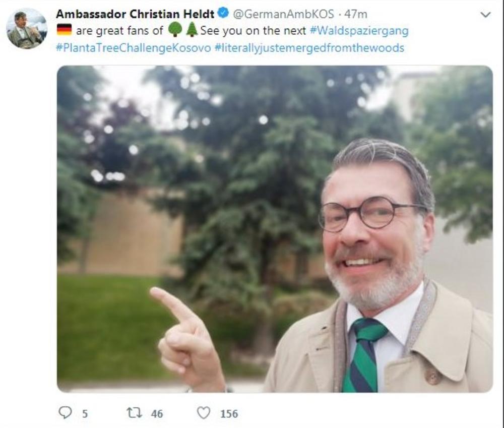 Nemački ambasador na Kosovu, Kristijan Heldt, na ironičan način je prokomentariso izjavu srpske premijerke Ane Brnabić da su "Albanci bukvalno izašli iz šume" i konstatovao da Nemci takođe vole šumu.