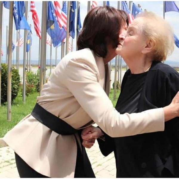 Uz Pacolija, Klintona i Olbrajtovu je dočekala i bivša predsednica Kosova Atifete Jahjaga, koja je organizator ceremonije obeležavanja 20. godišnjice ulaska NATO trupa na Kosovo.