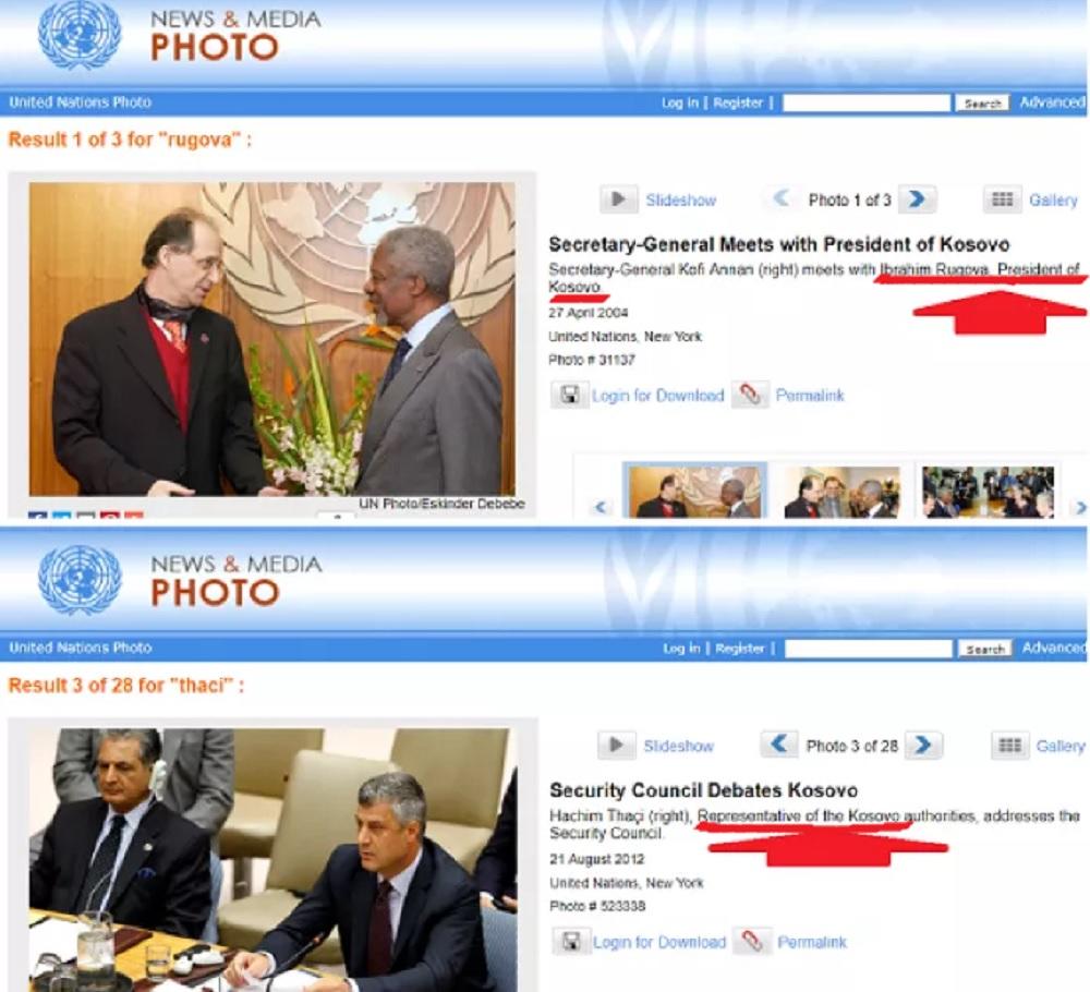 Naime na zvaničnoj internet stranici UN može se videti da je aktuelni predsednik tzv Republike Kosovo Hašim Tači nazvan samo predstavnik Kosova, a ne predsednik Republike Kosovo, kako bi to u Prištini želeli.