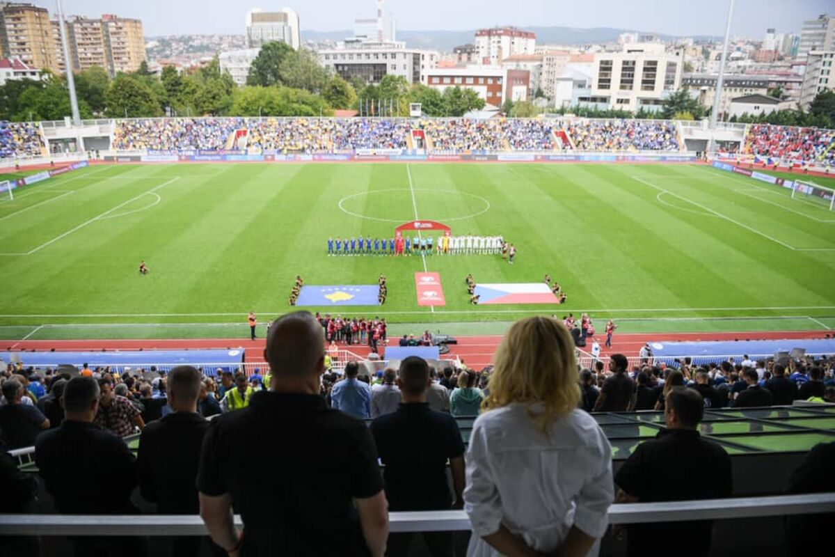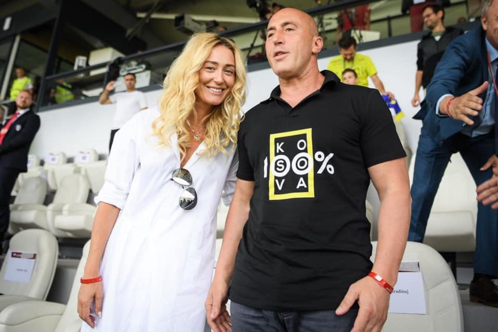 Međutim, pored dobre igre fudbalera pažnju publike skrenuo je bivši premijer Ramuš Haradinaj, koji je tekmu pratio u društvu supruge Anite.