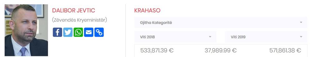 Takođe, Dalibor Jevtić, potpredsednik kosovske Vlade i ministar za zajednice i povratak u ostavci, prihodovao je ukupno 533.871 evra, dok je, prema sajtu, ove godine zaradu uvećao za skoro 38.000 evra.