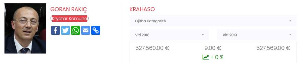 Prema sajtu Deklarimi, koji se bavi imovinom i zaradom kosovskih zvaničnika, zarada Gorana Rakića, gradonačelnika severnog dela Kosovske Mitrovice, u prošloj godini iznosila je 527.560 evra. Reč je, po njima, o ukupnoj zaradi stečenoj do tog trenutka.
