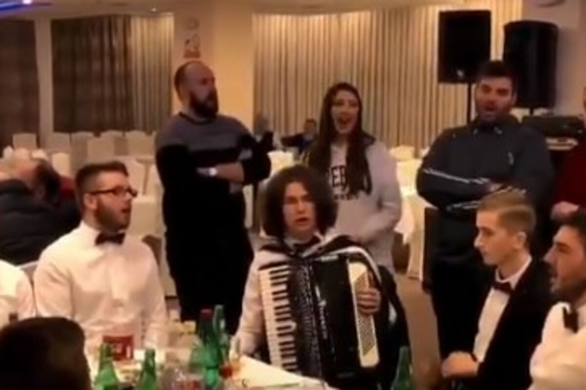 Na Tviteru se pojavio video snimak grupe mladića koji pevaju pesmu "Suza Kosova" u pratnji harmonike i par devojaka.