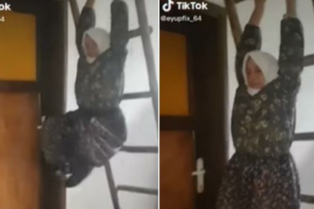 Stara žena (ili žena obučena kao stara žena), pokazala je kako izgleda jedan njen trening kod kuće - piše Kosovo.info.