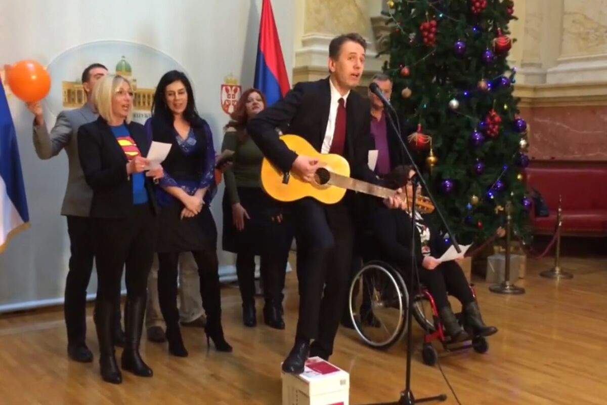 Lider Dosta je bilo danas je iznenadio sve u Skupštini kada je u holu parlamenta svirao i pevao Bajaginu pesmu "Pada vlada".
