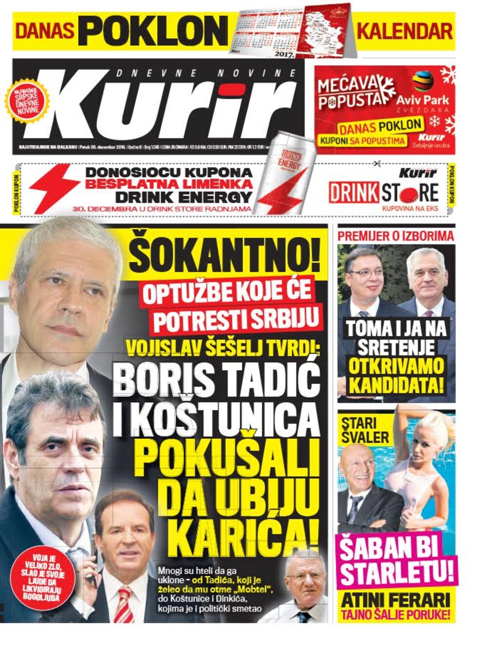 Kurir u sutrašnjem broju objavljuje šokantne optužbe jednog od vođa opozicije na račun Borisa Tadića i Vojislava Koštunice.