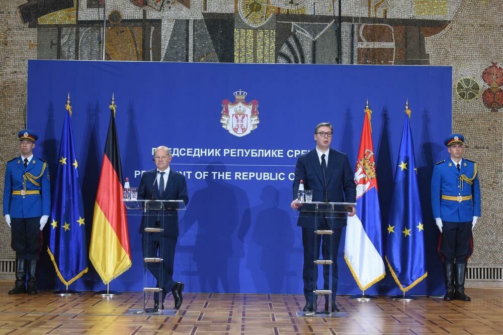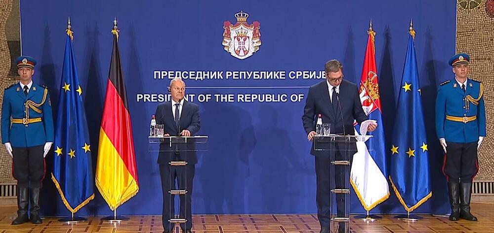 "Velika zahvalnost Šolcu, ovo je naš treći razgovor, a prvi u našoj zemlji. Otvoreno smo i iskreno razgovarali o svim važnim pitanjima. Predsednik sam zemlje kome je mnogo značajniji razgovor nego što je nemačkom kancelqaru sa mnom", rekao je predsednik Srbije.