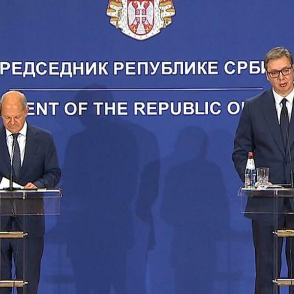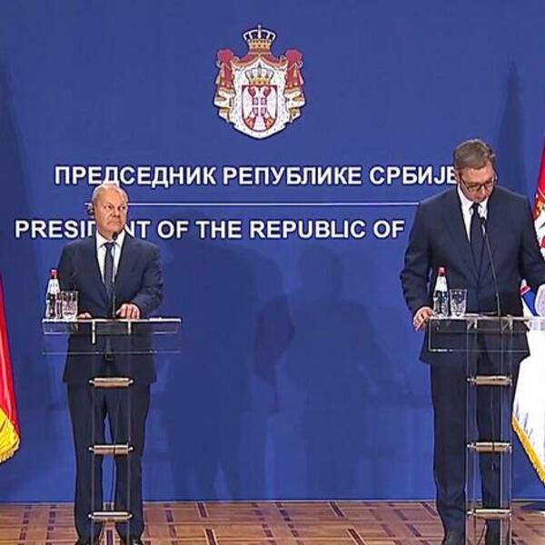 Nakon razgovora predsednik Aleksandar Vučić i Olaf Šolc obratili su se javnosti, a pored pitanja uvođenja sankcija Rusiji dotakli su se i međusobnog priznanja Srbije i Kosova.