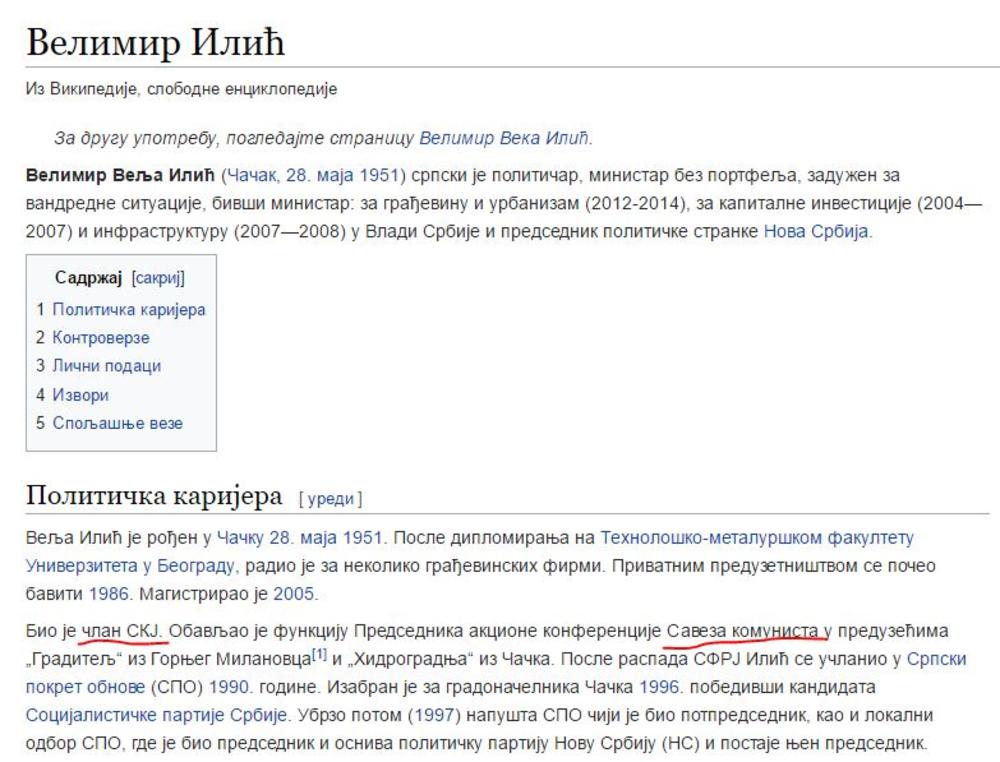 Međutim, iako lider Nove Srbije sebe predstavlja antikomunistom, kada ukucate njegovo ime i prezime, na stranici Wikipedia ipak stoji drugačije.