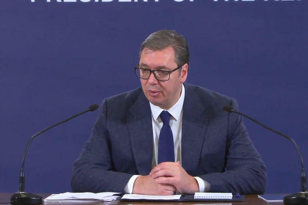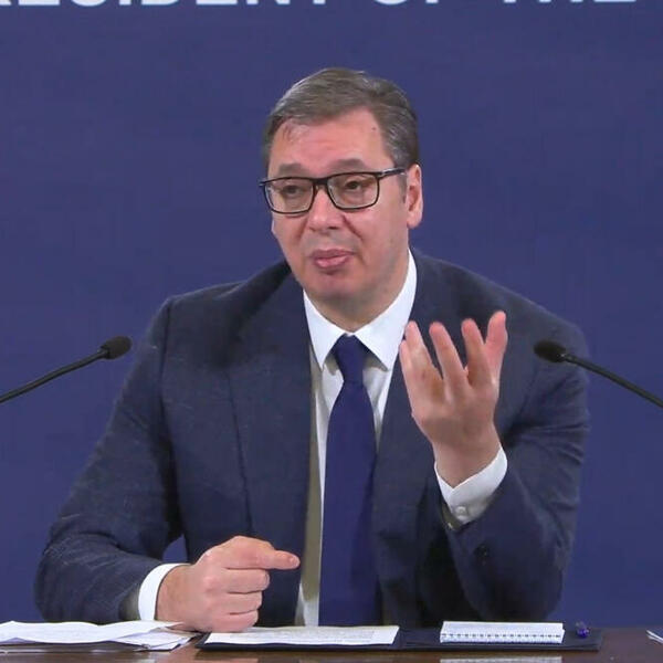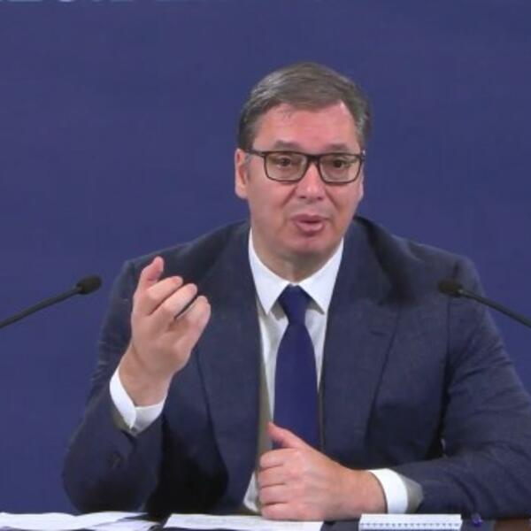 Predsednik Srbije Aleksandar Vučić obraća se javnosti po povratku iz Brisela, gde je danas imao duge, iscrpljujuće pregovore sa premijerom privremenih institucija u Prištini, Aljbinom Kurtijem, uz posredstvo predstavnika EU, Đozepa Borelja i Miroslava Lajčaka.
