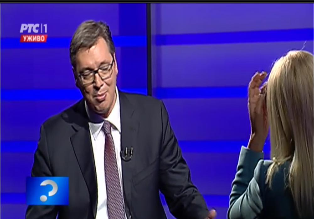 - SNS je predložila danas mene za kandidata, odluka se donosi na sednici Glavnog odbora u petak. Suština je u tome da ono na čemu sam insistirao, je da je ovo pitanje od značaja Srbije. Ja sam ovde večeras kao predsednik Vlade, a ne kao kandidat. Mnogo volim posao predsednika Vlade, postigli smo značajne rezultate, a poslednjih nekoliko meseci ste mogli da vidimo da svi oni koji su nas doveli do ivice bakrotstva i učestvovali u pljačkaškim privatizacijama žele da ponovo vrate Srbiju na ivicu provalije posle teških reformi koje priznaje ceo svet - rekao je Vučić u emisiji.