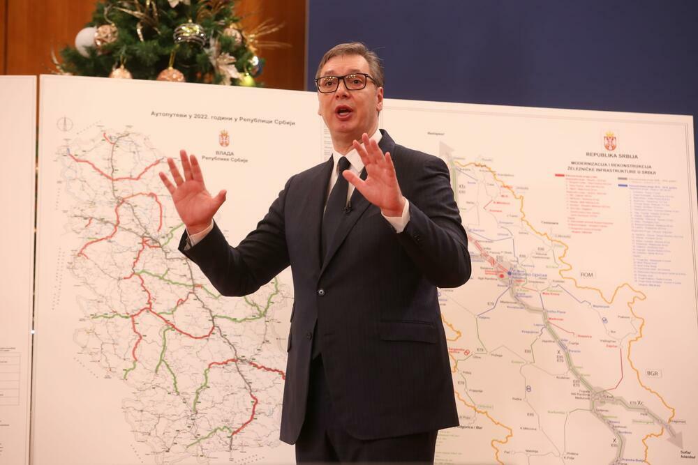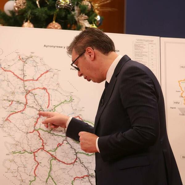 "Za 23 godine, Milošević plus DOS, urađeno je samo parče Novi Sad-Subotica. Ništa više od auto-puteva. Ako ima neko ko zna, nek mi ukaže. Radili smo jednu deonicu u vreme gospođe Kalanović prema Kragujevcu. Mi sada do kraja godine završavamo deonicu do Požege. Samo ove godine će biti završeno Surčin-Novi Beograd, za nekih dva i po meseca. Potom otvaramo Niš-Merošina deonicu, 5.5 kilometara, pa idemo ka Prokuplju. Onda deonicu auto-puta do Kruševca. Otvaramo deonicu Ruma-Šabac, 23 kilometra, za svega sedam meseci. Nema više prolaska kroz Jarak, Platičevo i druga mesta. Do kraja 2024. završavamo Kuzmin-Sremska Rača. Onda Pakovraća-Požega, sa najdužim tunelima Munjino brdo i Laz, završavamo do kraja godine".
