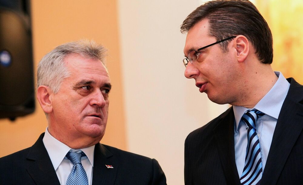 - Predsednik Srbije Tomislav Nikolić i predsednik Vlade SrbijeAleksandar Vučić razgovarali su danas o političkobezbednosnoj situaciji u zemlji i okruženju.