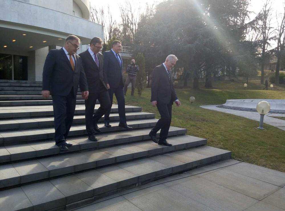 Predsednik Republike Srbije Tomislav Nikolić i predsednik Vlade Republike Srbije Aleksandar Vučić sastali su se sa predsednikom Republike Srpske Miloradom Dodikom i predsedavajućim Predsedništvu Bosne i Hercegovine Mladenom Ivanićem u Vili "Mir" u Beogradu.