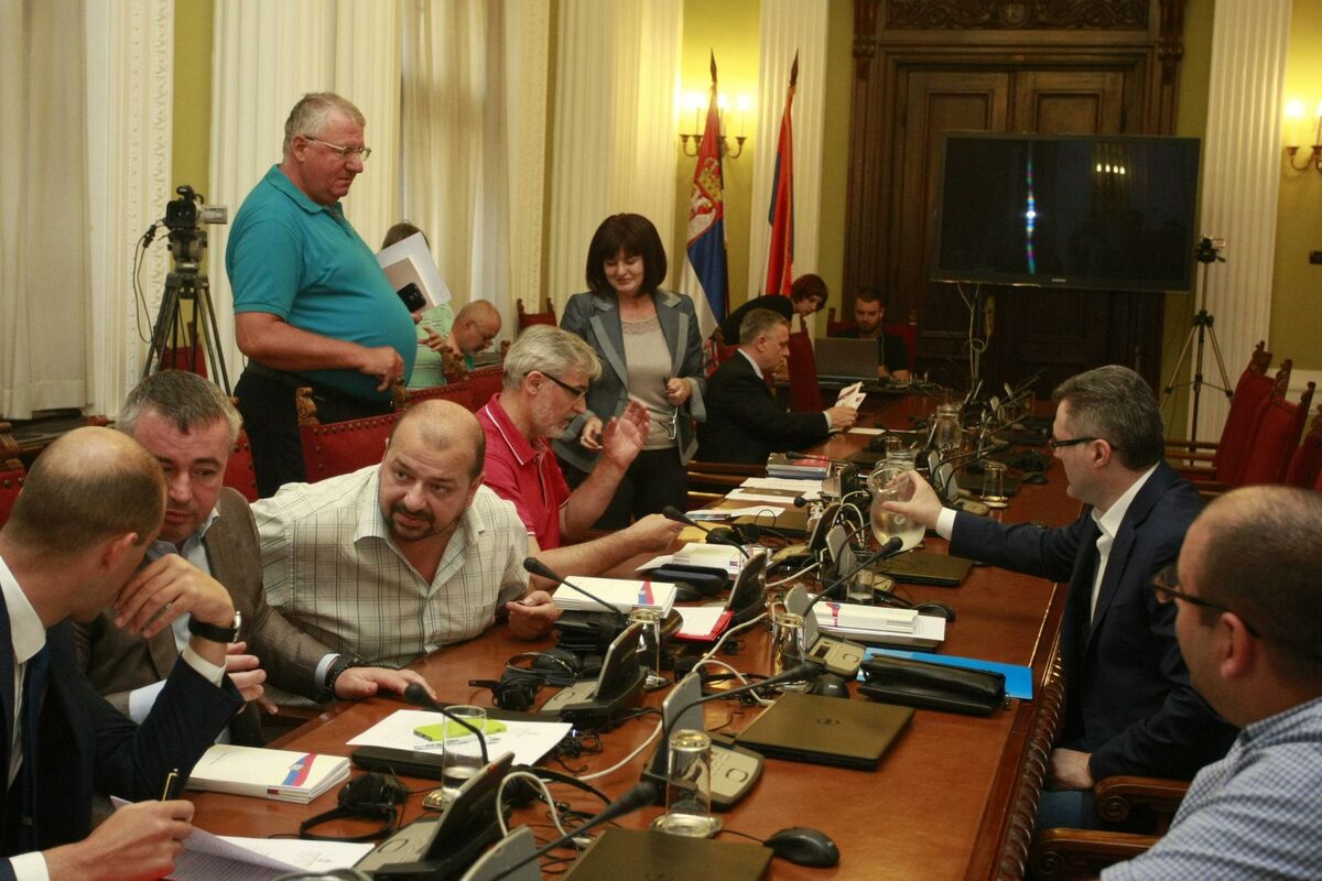 Nakon kraće rasprave sa skupštinskim službenicima, ali i usled nedostatka tona, ustao je i drugu konferenciju za novinare, nakon one u stranačkim prostorijama, održao stojeći ispred postavljenog stola.