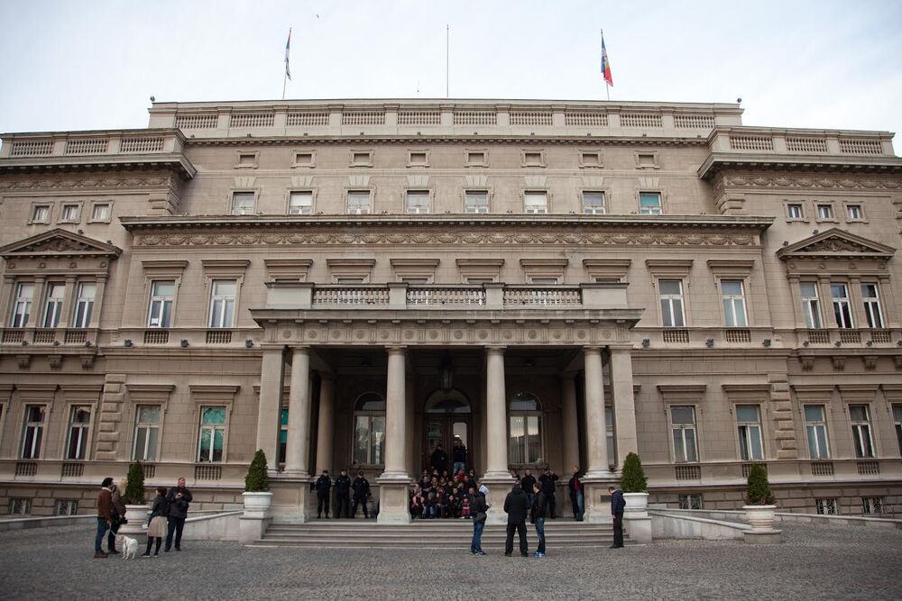 Oko 30 aktivista Inicijative "Ne da(vi)mo Beograd" seli su na stepenište ispred glavnog ulaza Skupštine grada u 7.00 i čekali gradonačelnika do 8.15, a skup koji je protekao mirno i bez incidenata obezbedjivala je policija.