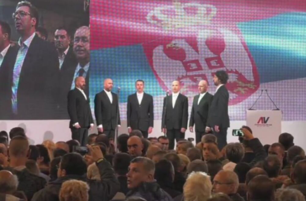 17:16 - Miting je počeo himnom Republike Srbije, Bože pravde, a okupljni čekaju da im se obrati predsednički kandidat Vučić.