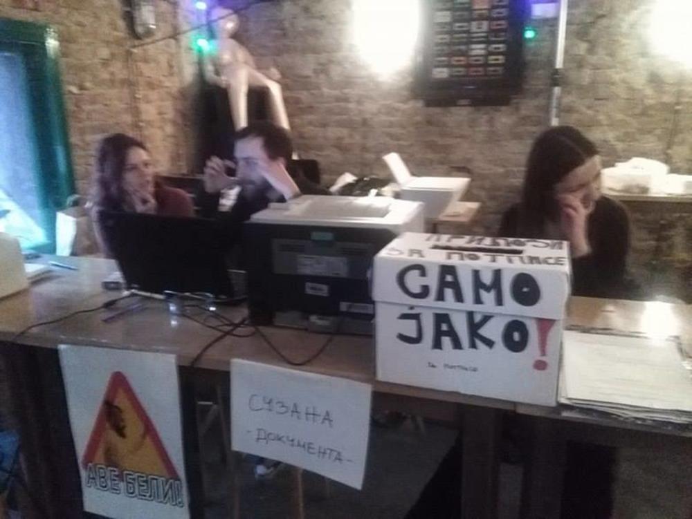 “Od danas smo ponovo u Mladenovcu, ostajemo do nedelje. I u Beogradu smo rezervisali takođe do nedelje. Što se tiče glavnog grada, do subote smo u Cetinjskoj 15, u Novinarnici. Za dodatne informacije možete se obavestiti na Fejsu, Tviteru i ostalim društvenim mrežama. Notari prave odvratnu opstrukciju, preko svake mere. Jedna notarska kancelarija koja je trebalo da se pojavi od utorka, nije se pojavila, pa smo za to izvisili. U Bulevaru kralja Aleksandra se ovog petka notar nije pojavio”, počeo je momak koji je želeo da ostane anoniman.
