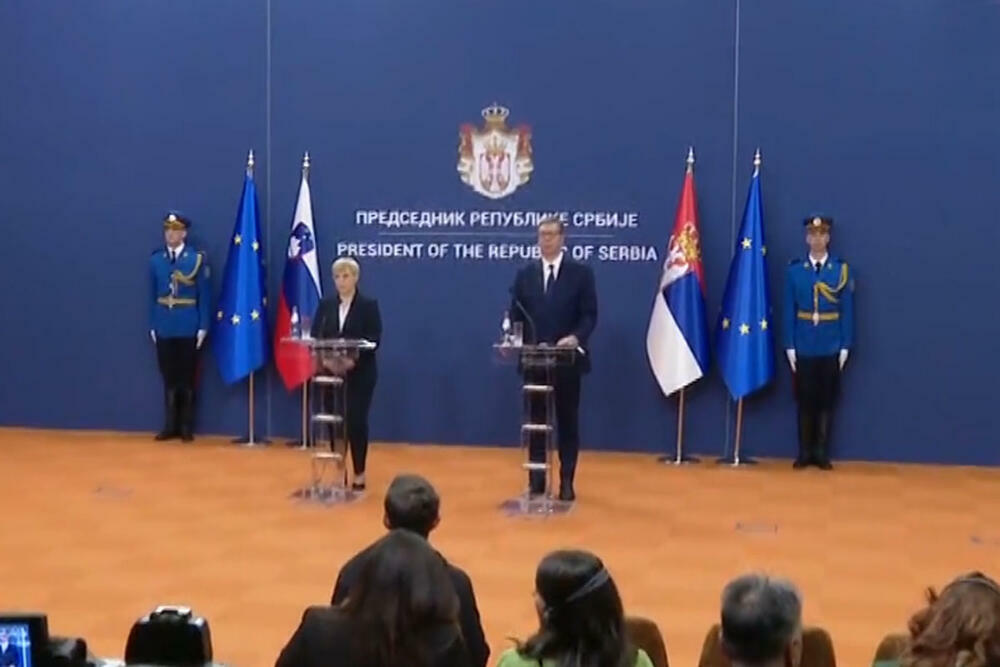Predsednik Srbije Aleksandar Vučić obratio se javnosti na zajedničkoj konferenciji posle razgovora s predsednicom Slovenije Natašom Pirc Musar.