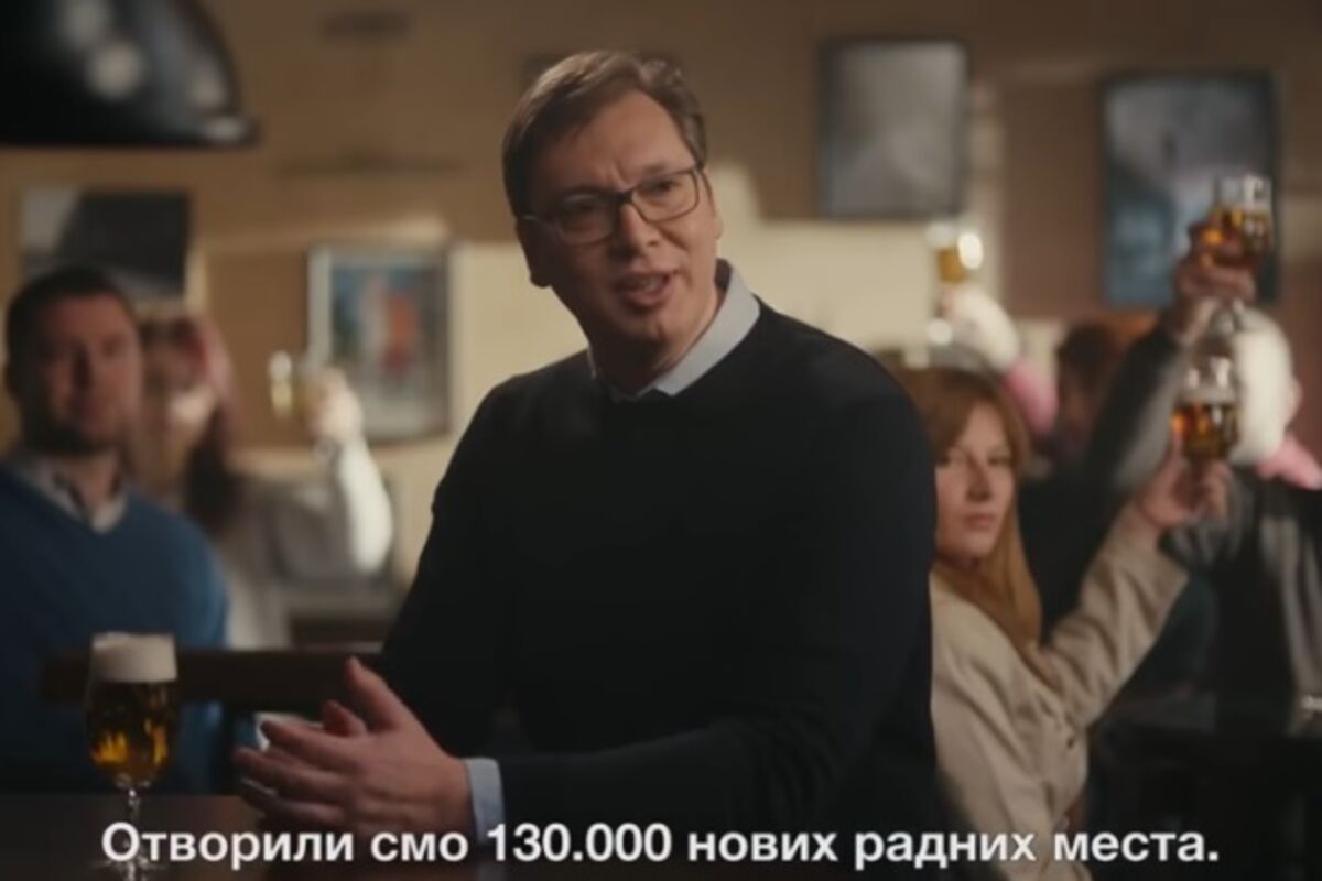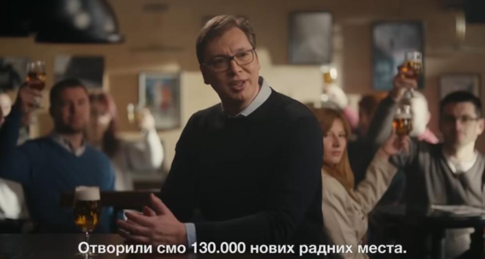 U spotu Vučić pominje da je za 3 godine stvoreno 130.000 novih radnih mesta, otvoreno 55 fabrika, ali i sačuvana Železara Smederevo.