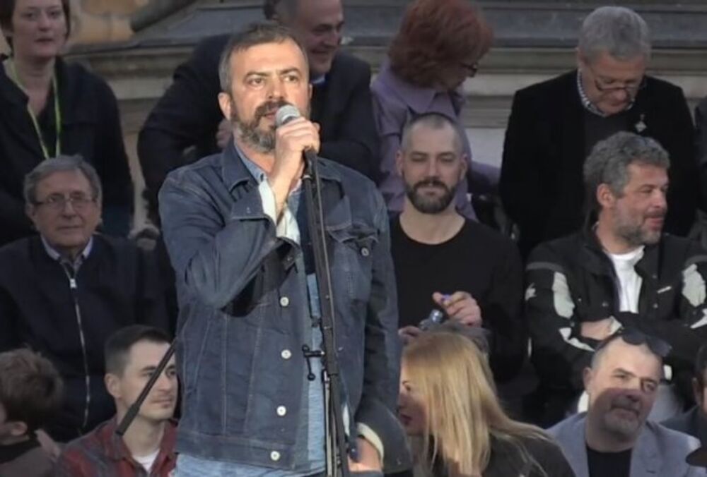 18.55 - Glumac Nikola Đuričko je pohvalio hrabrost građana koji su izašli na Trg Republike, i podsetio na zasluge građana na rušenju nekadašnjeg režima Slobodana Miloševića, čiji su sastavni deo neke od perjanica sadašnje vlasti.