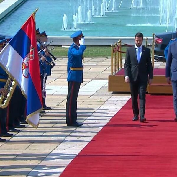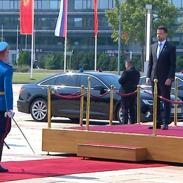 Predsednik Srbije Aleksandar Vučić dočekao je, svečanom ceremonijom ispred Palate Srbija, predsednika Crne Gore Jakova Milatovića koji boravi u zvaničnoj poseti Srbiji.