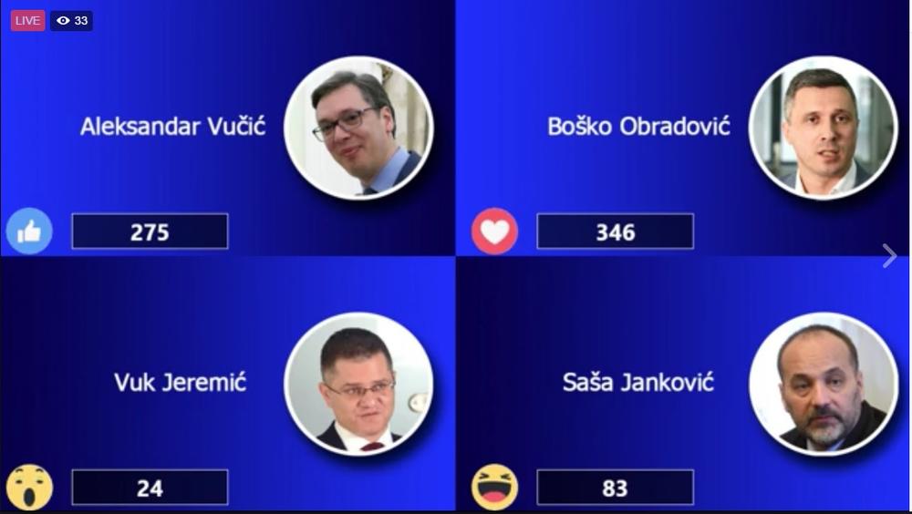 U igri su predsednički kandidati Boško Obradović, Aleksandar Vučić, Vuk Jeremić i Saša Janković.