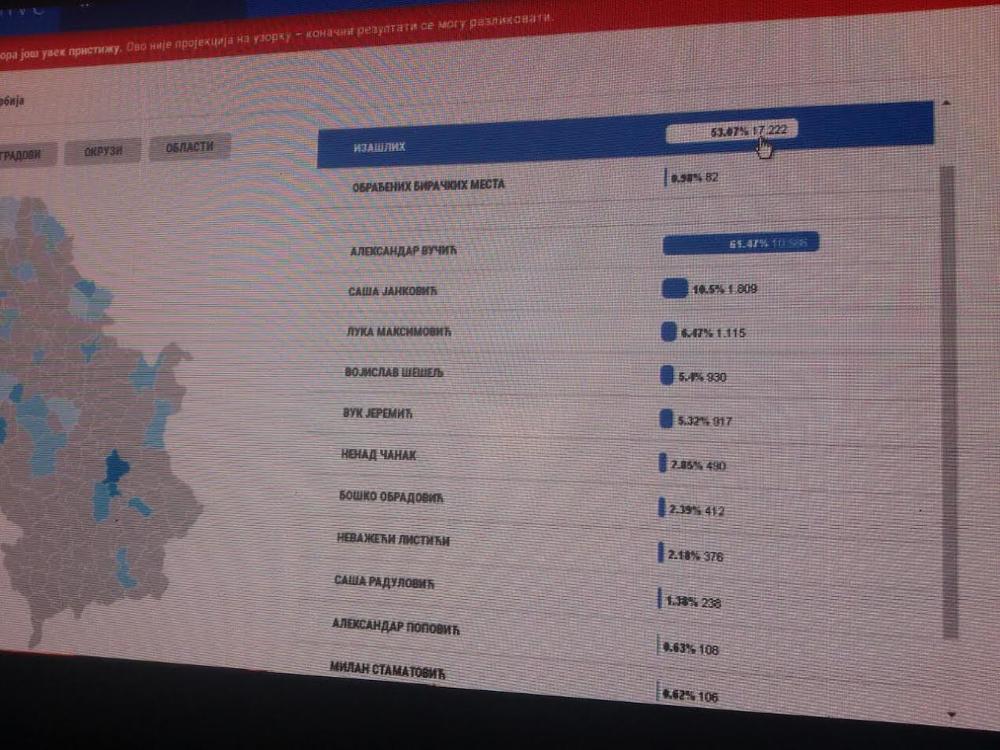 20:55 Jankovićev štab: prvi rezultati Vučiću 61 odsto!