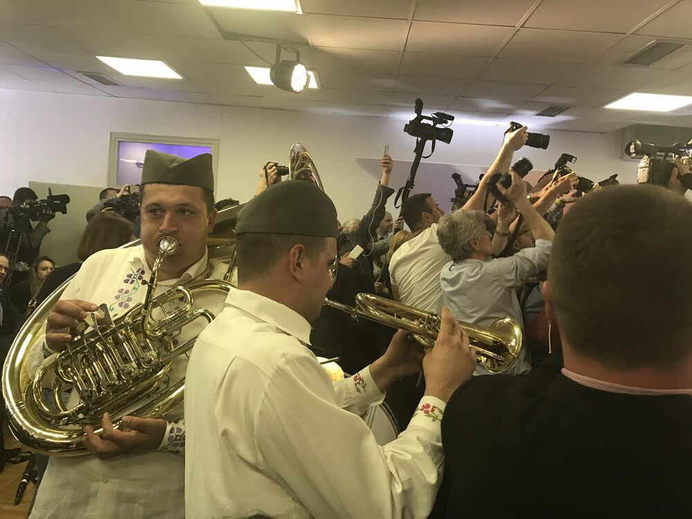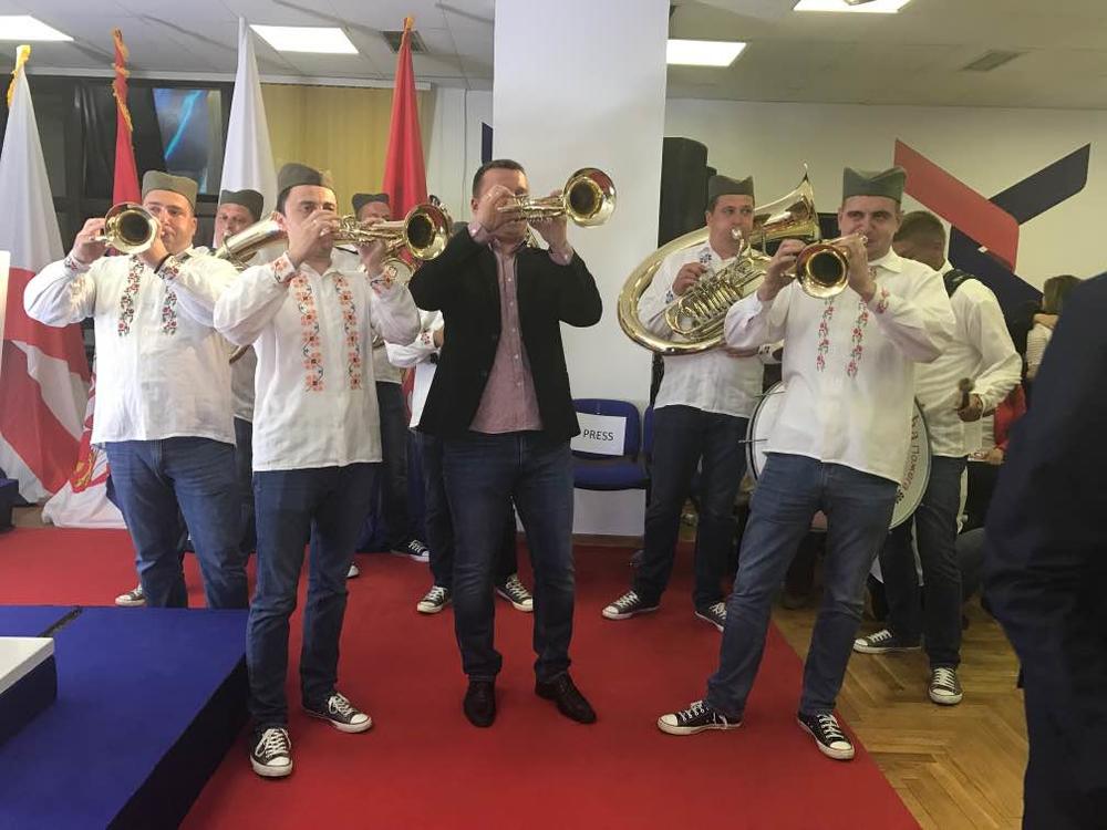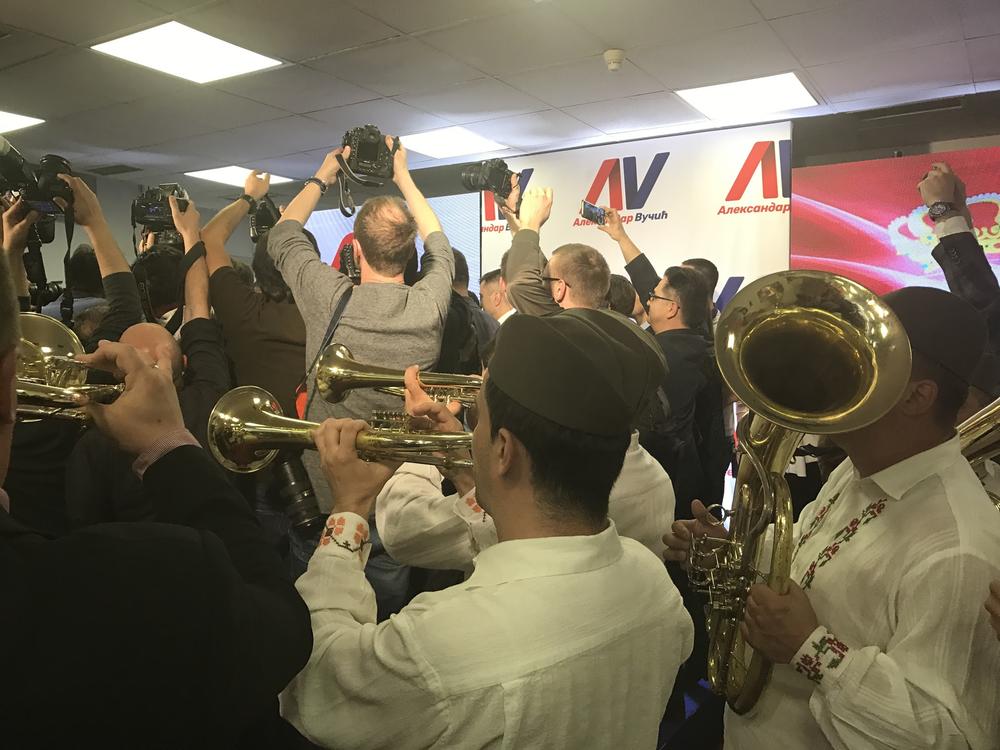 Večeras je u štabu Aleksandra Vučića pravo slavlje. Otvoren je šampanjac, tu su i trubači, a pristalice Aleksandra Vučića su i vatrometom slavili pobedu.