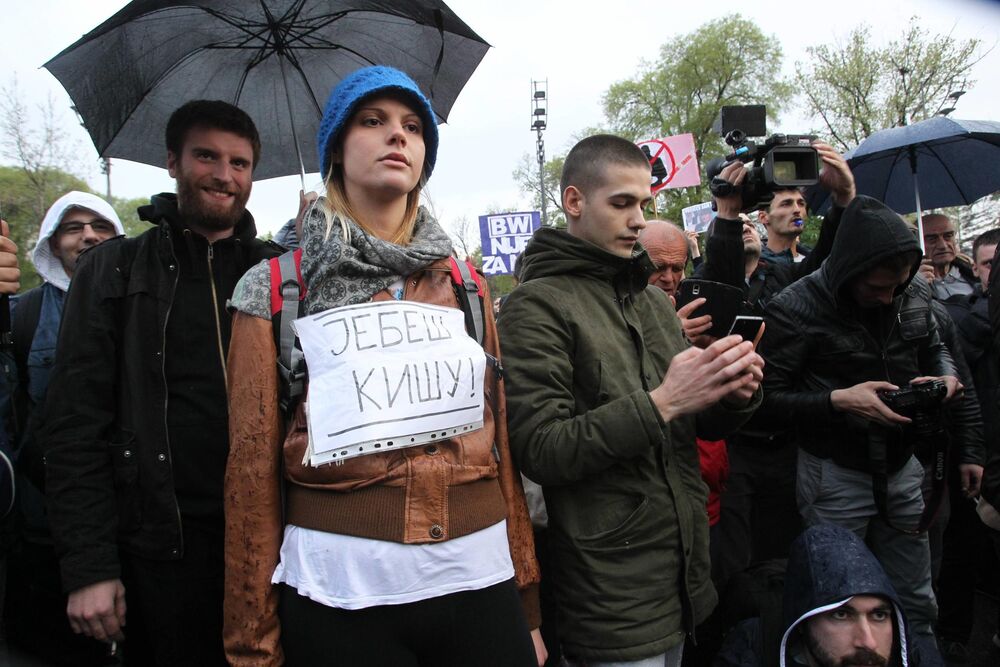 Iako pada kiša, okupljeni ne odustaju. Kao što su naveli ranije, neće istupiti dok se ne ispune zahtevi zbog kojih se i nalaze na platou ispred Narodne skupštine.