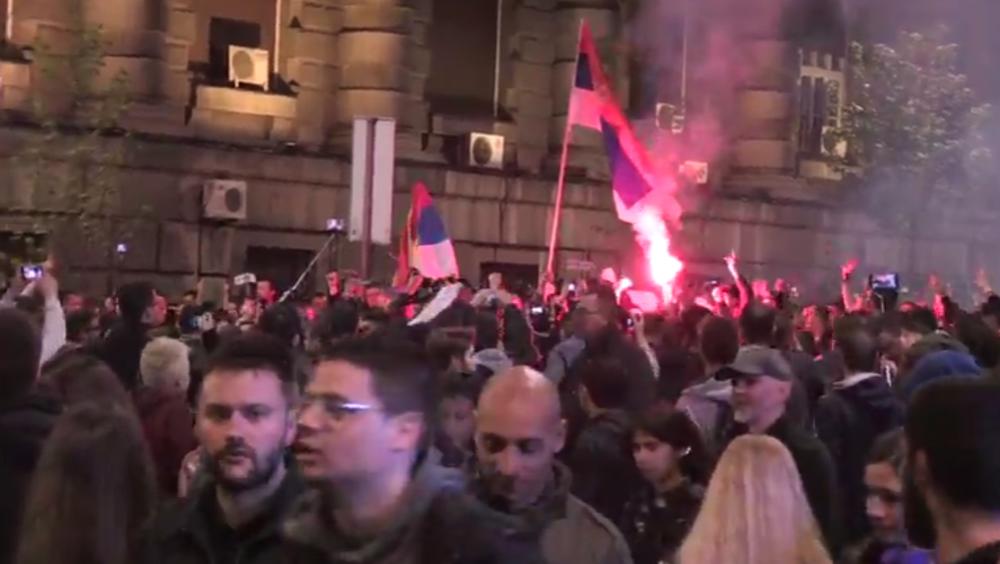 Okupljni uzvikuju "Srbija, Srbija" i "Ne damo Srbiju".