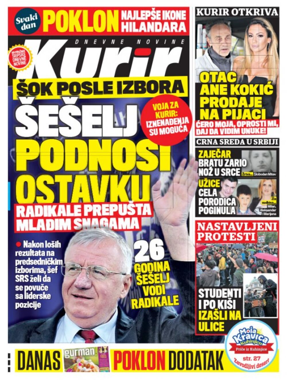 Lider radikala, Vojislav Šešelj razmatra mogućnost da posle 26 godina šefovanja lidersku poziciju, zbog lošeg izbornog rezultata, prepusti nekom od omladinaca, pa čak i sinu Aleksandru.