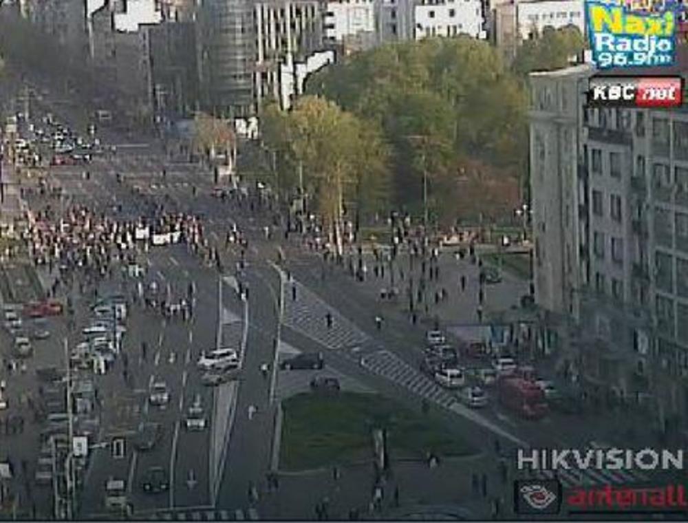 21:17 - Kolona demostranata stiže ispred Narodne Skupštine.